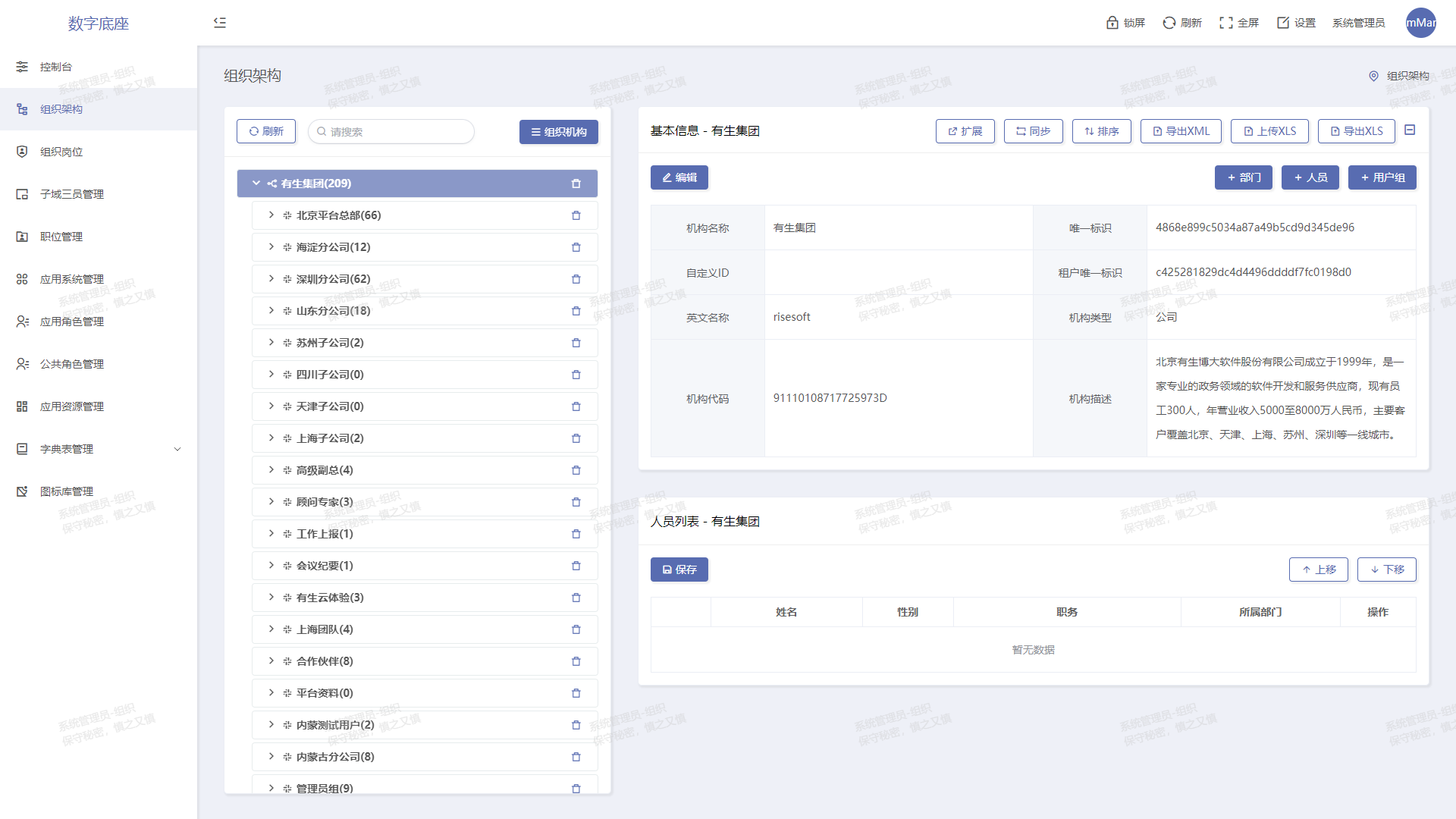 以組織結(jié)構(gòu)和應(yīng)用授權(quán)為主線,內(nèi)置三員管理、崗位制等功能